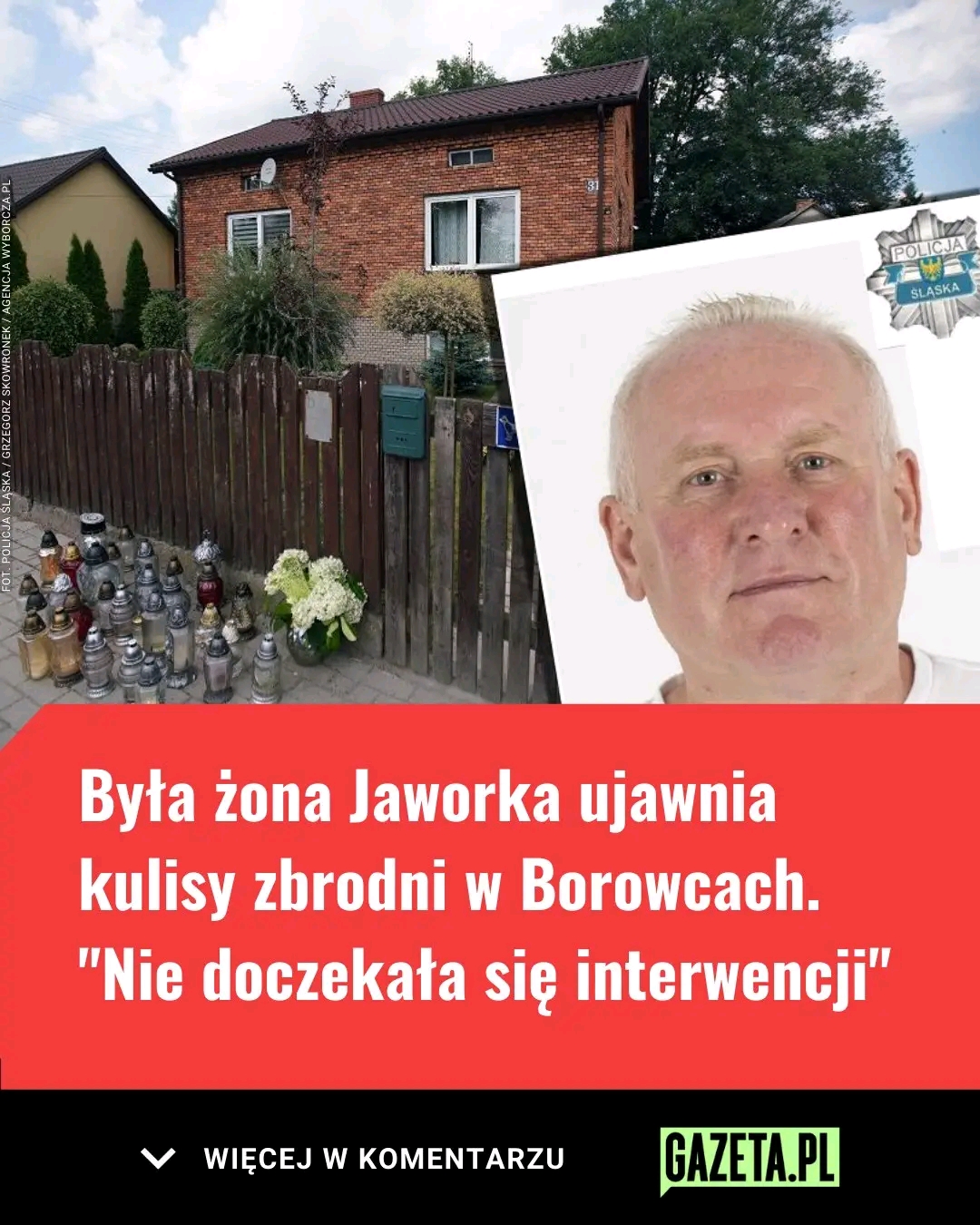 Jacek Jaworek wyprowadził się w 2018 roku, ale “nie dawał o sobie zapomnieć”. Miał bowiem między innymi pojawiać się w pobliżu mieszkania oraz przysłać kwiaty i zegarek. Z kolei na początku 2021 roku jego bratowa Justyna poinformowała jego byłą żonę, że u nich zamieszkał, ponieważ był współwłaścicielem odziedziczonego po rodzicach domu w Borowcach (woj. śląskie, pow. częstochowski). “Justyna wysyłała mi zdjęcia: porozrzucane rzeczy, bałagan, butelki po alkoholu. To było uderzająco znajome. (…) Chciał im umeblować życie dokładnie w taki sam sposób, jak wcześniej zrobił to nam” – napisała była żona Jaworka