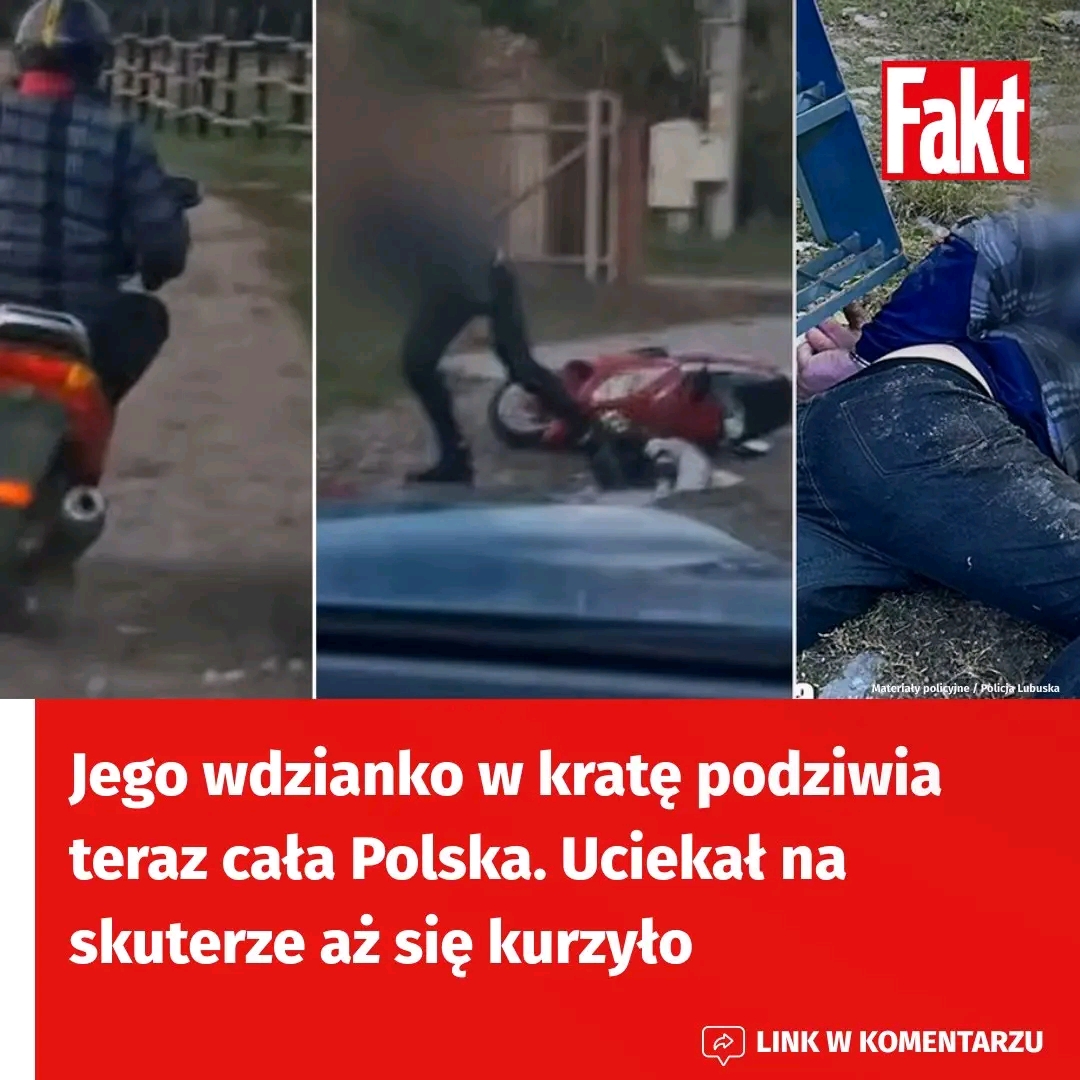 Jego wdzianko w kratę podziwia teraz cała Polska. Uciekał na skuterze aż się kurzyło
