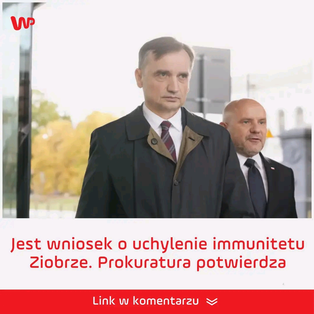 Dzisiaj minister sprawiedliwości i prokurator generalny Waldemar Żurek złożył wniosek o uchylenie immunitetu panu Zbigniewowi Ziobro. Wniosek ten dotyczy również wyrażenia zgody na zatrzymanie i tymczasowe aresztowanie pana posła – przekazała rzeczniczka prasowa PG prok. Anna Adamiak. – Wszystkie dowody pozwoliły na przyjęcie przez prokuratora dostatecznie uzasadnionego podejrzenia, że pan poseł Zbigniew Ziobro popełnił 26 przestępstw – dodała.