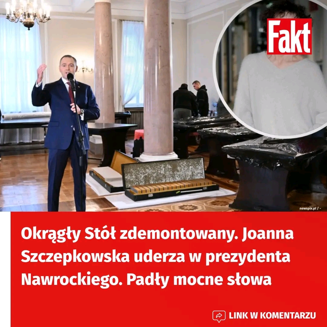 Przypomnijmy, że prezydent Karol Nawrocki zdecydował o demontażu Okrągłego Stołu z Pałacu Prezydenckiego. Stało się to w czwartek. Okrągły Stół ma trafić do Muzeum Historii Polski. — Chciałbym z dumą powiedzieć, i mam nadzieję, że nie przedwcześnie — dziś, szanowni państwo, skończył się w Polsce postkomunizm — powiedziała wtedy głowa państwa. Tymi słowami prezydent nawiązał do słynnej wypowiedzi aktorki Joanny Szczepkowskiej z “Dziennika Telewizyjnego” w 1989 r. Artystka teraz w mediach społecznościowych skomentowała sprawę, uderzając w Karola Nawrockiego.