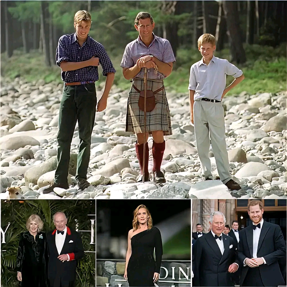Prince William, Prince Charles, and Prince Harry at Balmoral on August 12, 1997