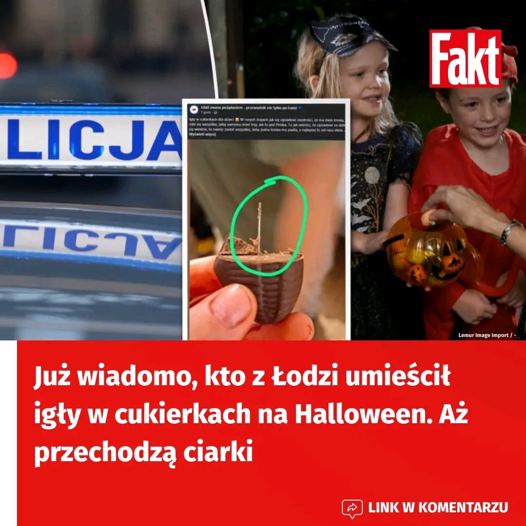 Szokujące odkrycie w Łodzi! Podczas Halloween dzieci znalazły metalowe igły w czekoladkach rozdawanych na Bałutach. Sprawa trafiła na policję, a stand-uperka Aleksandra Radomska ostrzegła rodziców w sieci. Ustalono już, kto stoi za tym niebezpiecznym “żartem”.