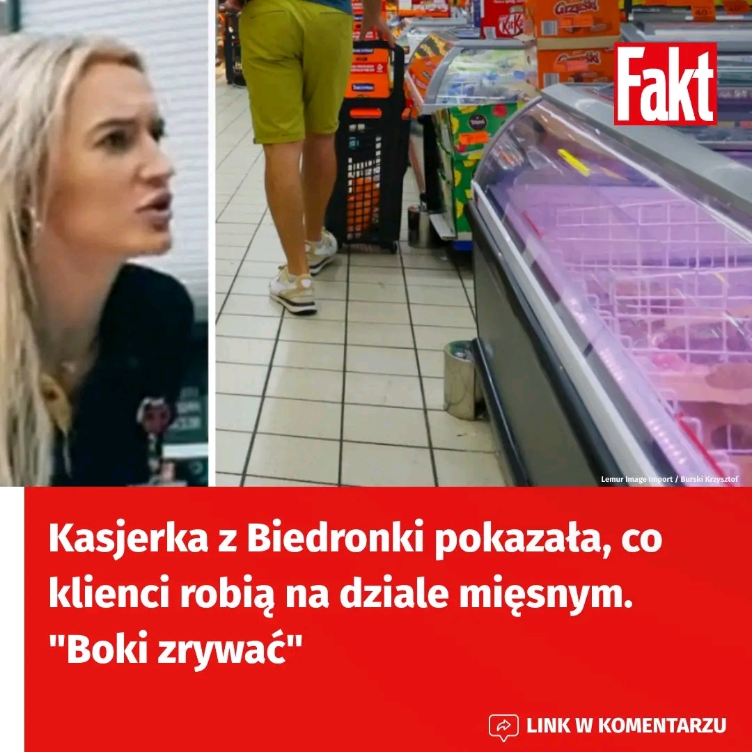 Pani Patrycja, jedna z najbardziej znanych w Polsce kasjerek z Biedronki, pokazała parodię zachowań klientów. Ciężko jest uwierzyć w to, co potrafią schować do lodówek z mięsem. Z komentarzy dowiadujemy się, że jest to nie tylko specyfika sklepu, gdzie zatrudniona jest słynna sprzedawczyni.
