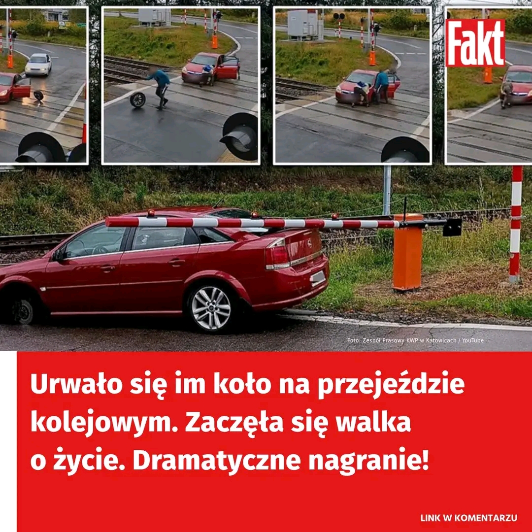 Sytuacja wydarzyła się na jednym z przejazdów kolejowych w Katowicach. Policjant, wracając do domu po służbie, dostrzegł coś niepokojącego – na środku torów stał osobowy opel, któremu w trakcie jazdy odpadło koło.