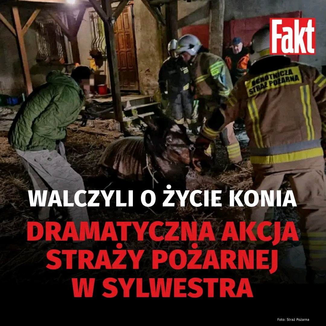 Sylwestrowy wieczór w powiecie polkowickim okazał się wyjątkowo trudny — tym razem strażacy zostali wezwani nie do pożaru czy kolizji, ale do ratowania konia. Jak informuje Komenda Powiatowa Państwowej Straży Pożarnej w Polkowicach, zgłoszenie dotyczyło klaczy, która poślizgnęła się na oblodzonej nawierzchni i nie była w stanie samodzielnie wstać.