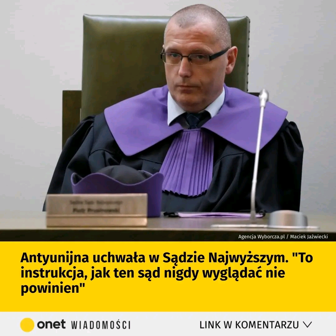 Jeśli ktoś ma ochotę zapoznać się z instruktażem: “jak nie powinien wyglądać Sąd Najwyższy”, to powinien obejrzeć transmisję z tych obrad. Osoby, które mają wadliwy status sędziego, uniemożliwiający im utworzenie sądu, których nikt w Europie, jak również gremialnie w polskich sądach i uniwersytetach, nie uznaje za sąd, właśnie “orzekli”, że są Sądem Najwyższym i nikt nie może twierdzić, że nim nie są. Brawo — mówi Onetowi prof. Piotr Prusinowski, tzw. legalny sędzia Izby Pracy, który odmówił orzekania.