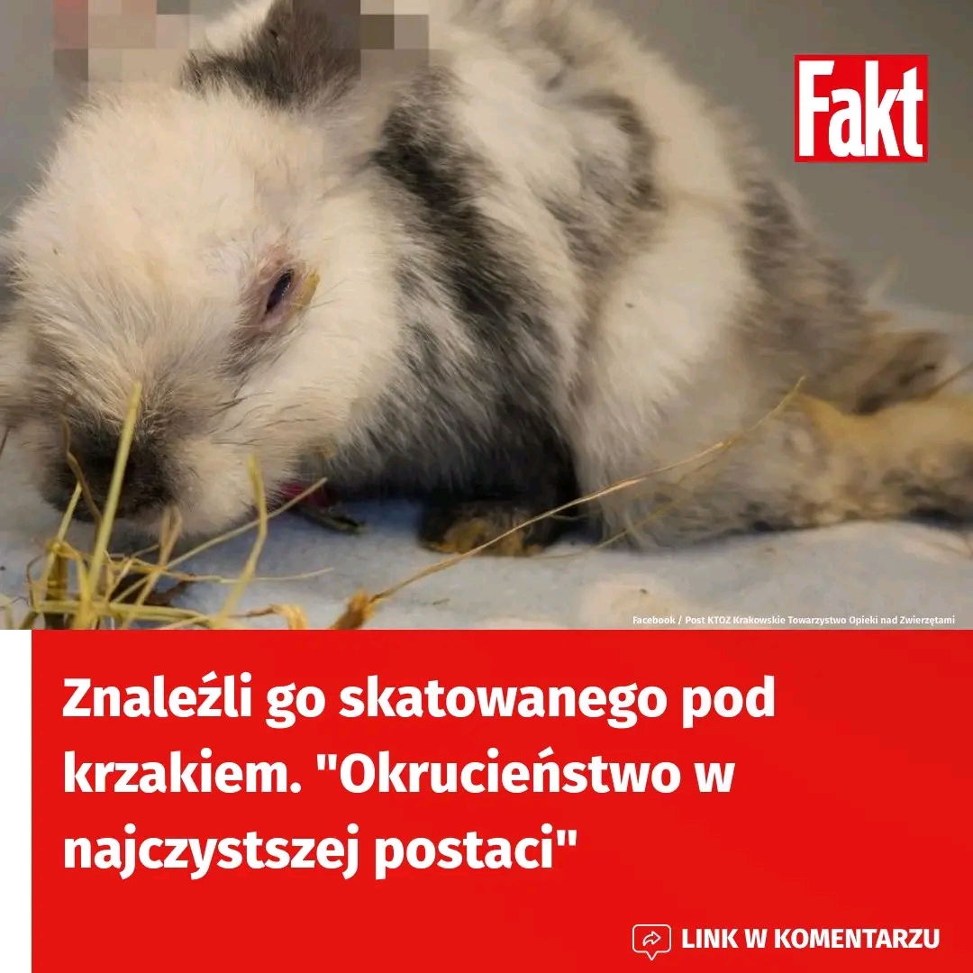 “Odebrało nam mowę, poleciały łzy… Okrucieństwo w najczystszej postaci i sadyzm — tak można delikatnie określić to, co spotkało tego króliczka. Wszystko wskazuje na to, że został skatowany przez człowieka. Zwierzę było w tragicznym stanie” — opisują wolontariusze KTOZ.
