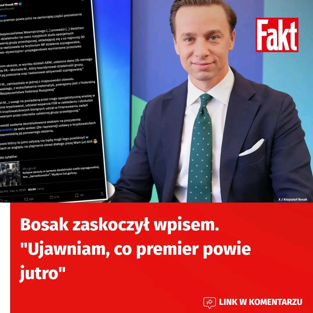 Krzysztof Bosak zaskoczył wszystkich swoim wpisem, ujawniając fragmenty tajnego komunikatu ABW. Co premier ma do powiedzenia?