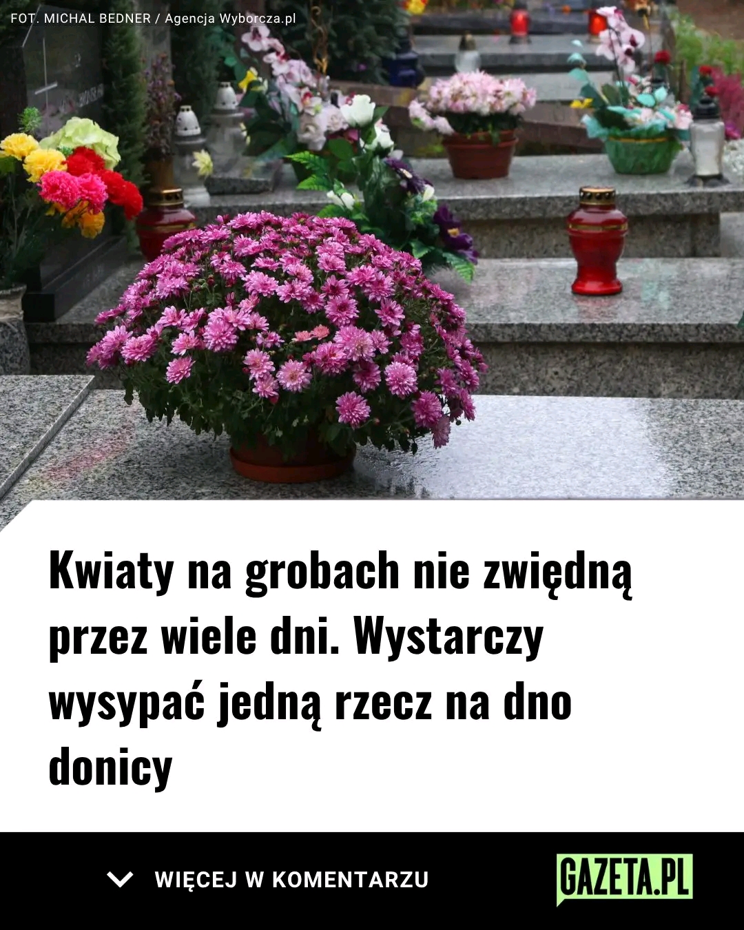 Kwiaty na grobach nie zwiędną przez wiele dni. Wystarczy wysypać jedną rzecz na dno donicy