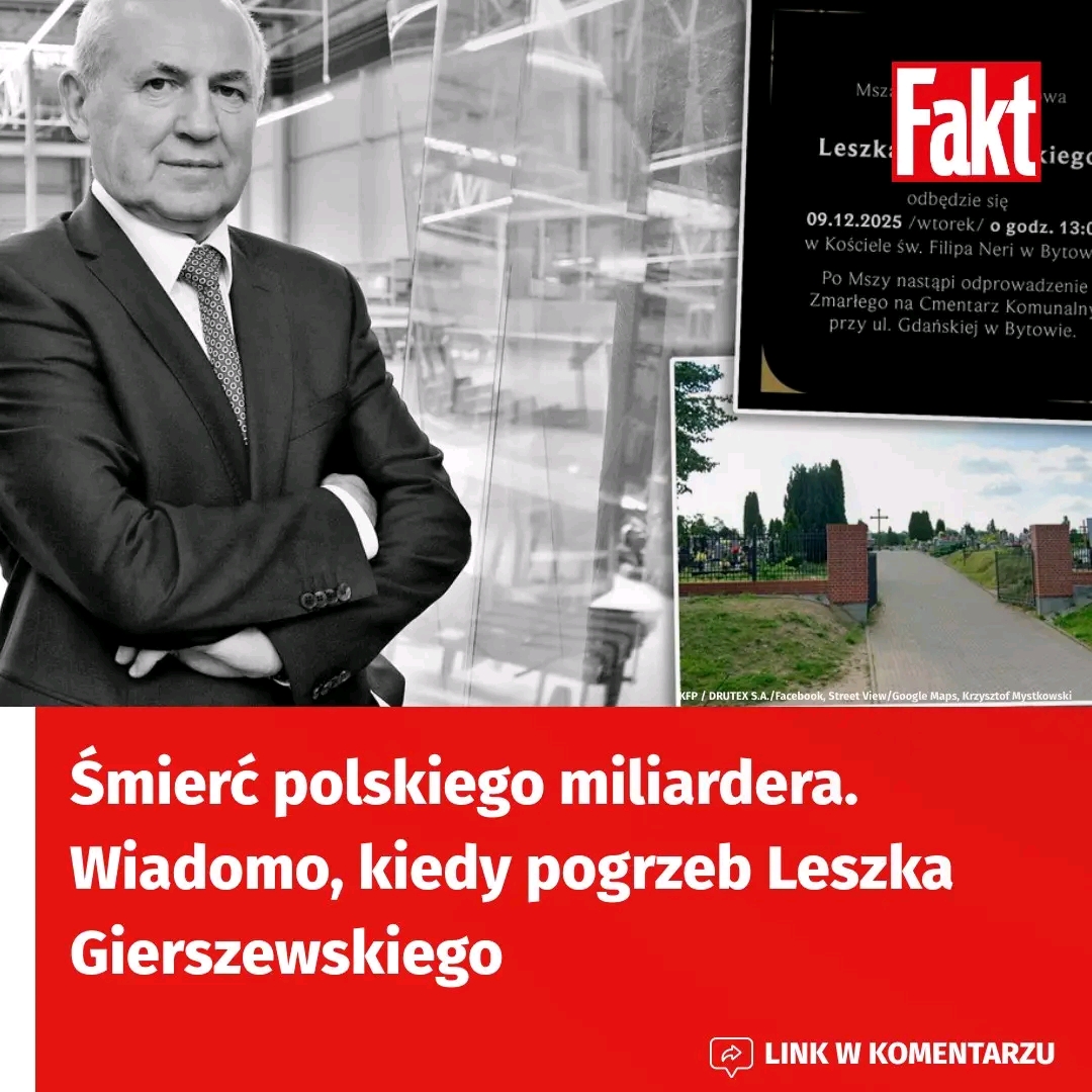 Teraz Drutex poinformował o ostanim pożegnaniu swojego prezesa. Uroczystości odbędą się w najbliższy wtorek, 9 grudnia, w Bytowie.
