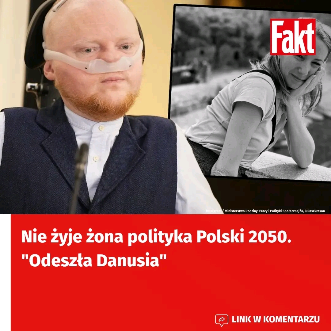 Łukasz Krasoń poinformował o śmierci swojej żony, Danuty. “Odeszła Danusia. Ciałem nie ma jej już z nami, ale duchem będzie już na zawsze” — takim opisem opatrzył jej czarno-białe zdjęcie w mediach społecznościowych. Para pozostawała w związku małżeńskim od 2019 r., rok wcześniej na świat przyszedł ich syn, Adam.