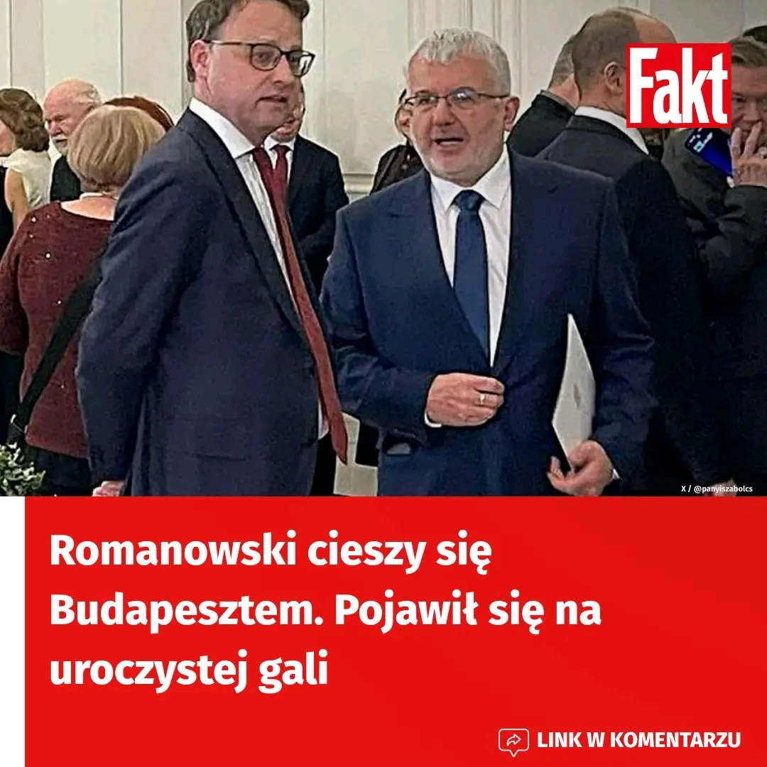 Zdjęcie z uroczystości szybko trafiło do mediów społecznościowych, prowokując falę komentarzy. Romanowski wyglądał na w pełni zrelaksowanego. Politykowi towarzyszył dyrektor węgierskiej fundacji, Pal Attila Illes.