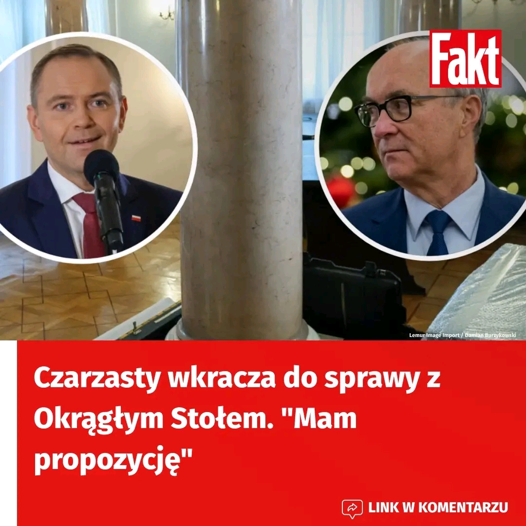 Ja Okrągłego Stołu się nie wstydzę. W związku z tym mam taką propozycję: jako Sejm przejmiemy Okrągły Stół. Przejmiemy ten symbol jedności, porozumienia i rozsądku do Sejmu. Bo Sejm powinien być i jest miejscem dialogu — powiedział marszałek Sejmu Włodzimierz Czarzasty. To reakcja na to, co wydarzyło się w czwartek 18 grudnia w Pałacu Prezydenckim. — Chciałbym z dumą powiedzieć, i mam nadzieję, że nie przedwcześnie — dziś, szanowni państwo, skończył się w Polsce postkomunizm. Niech żyje wolna Polska — powiedział tam Karol Nawrocki podczas demontażu historycznego mebla.