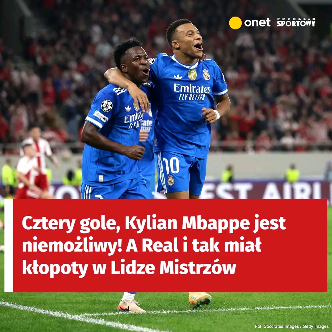 Wystarczyło 7 minut, by nastroje w Pireusie z euforycznych stały się minorowe. Kylian Mbappe trzykrotnie trafił do siatki, zdobywając jednego z najszybszych hat-tricków w karierze i jednocześnie błyskawicznie odwracając wynik dla Realu. A mogło być jeszcze lepiej, bo przed przerwą nie uznano jeszcze gola Viniciusa, a w poprzeczkę trafił Aurelien Tchouameni.