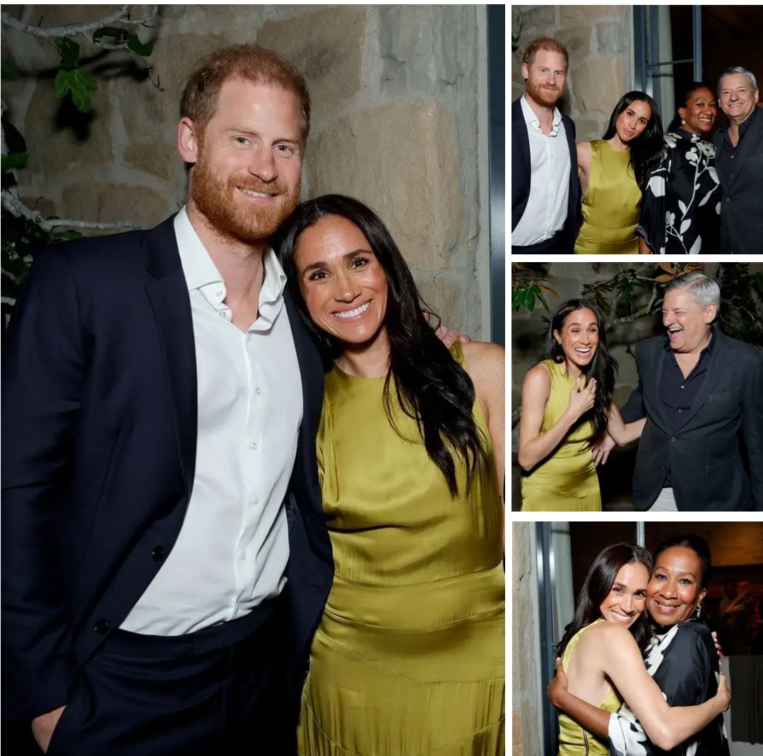Meghan and Harry were seen smiling and posing for photos with Sarandos and Avant. In one photo, Meghan and Avant hold hands, and in another, the two women share a warm hug.