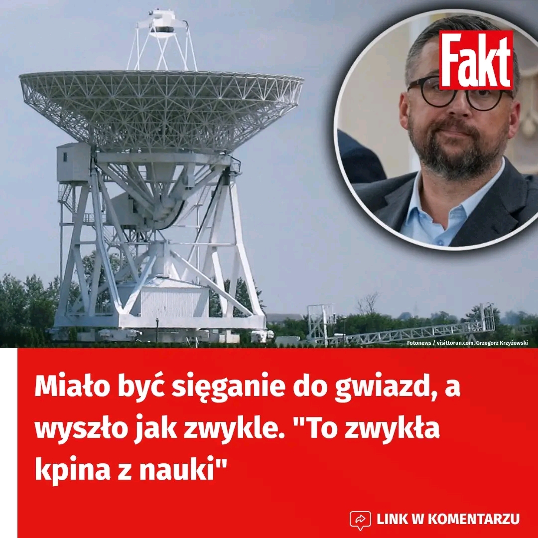 Jeszcze kilkanaście dni temu minister mówił, że sięgać gwiazd to nie pusty slogan. No i okazało się, że jednak jest — mówi “Faktowi” Karol Wójcicki, popularyzator astronomii. Jeden z najważniejszych polskich instrumentów badawczych, radioteleskop RT4 w podtoruńskiej miejscowości Piwnice, może zakończyć działalność. Ministerstwo Nauki i Szkolnictwa Wyższego nie chce teraz wspomóc naukowców. Ci napisali na Facebooku, że resort nie przyznał “środków na działalność RT4 na kolejne trzy lata”. Po ich oświadczeniu minister nauki przyznał, że jego plan finansowy “uniemożliwia natychmiastowe sfinansowanie wszystkich dobrze ocenionych projektów”.