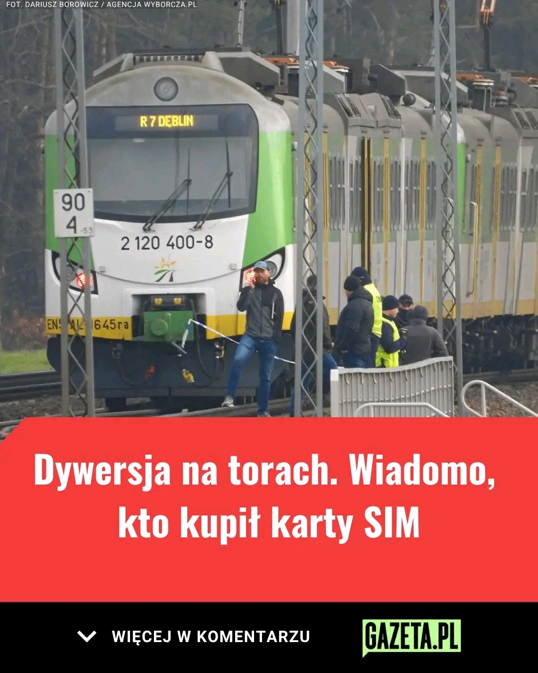 Jak pisaliśmy, na torach znaleziono rozładowany telefon. Reporter RMF FM Krzysztof Zasada przekazał nieoficjalnie we wtorek (18 listopada), że służby już wiedzą, kto kupił karty SIM do telefonów, które miały służyć do zdalnego zdetonowania ładunków. Jeden z nich, z niewyjaśnionych jak dotąd przyczyn, nie eksplodował. Karty, należące do polskiego operatora, miały być zarejestrowane na zagraniczne paszporty. Nie wiadomo jednak, czy właściciel paszportu jest w rzeczywistości poszukiwanym sabotażystą.
