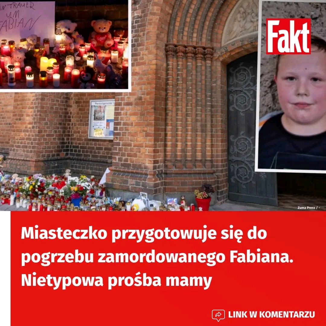 Fabian 10 października zamiast pójść do szkoły został w domu, bo źle się czuł. Gdy matka wróciła z pracy, chłopca nie było. Kobieta od razu miała złe przeczucia, które niestety potwierdziły się kilka dni później, gdy ciało 8-latka znaleziono na leśnym terenie. Śledczy ustalili, że Fabiana zamordowano. Do tej pory nie odbył się jego pogrzeb. Ujawniono, że jest on planowany na najbliższy czwartek (30 października).