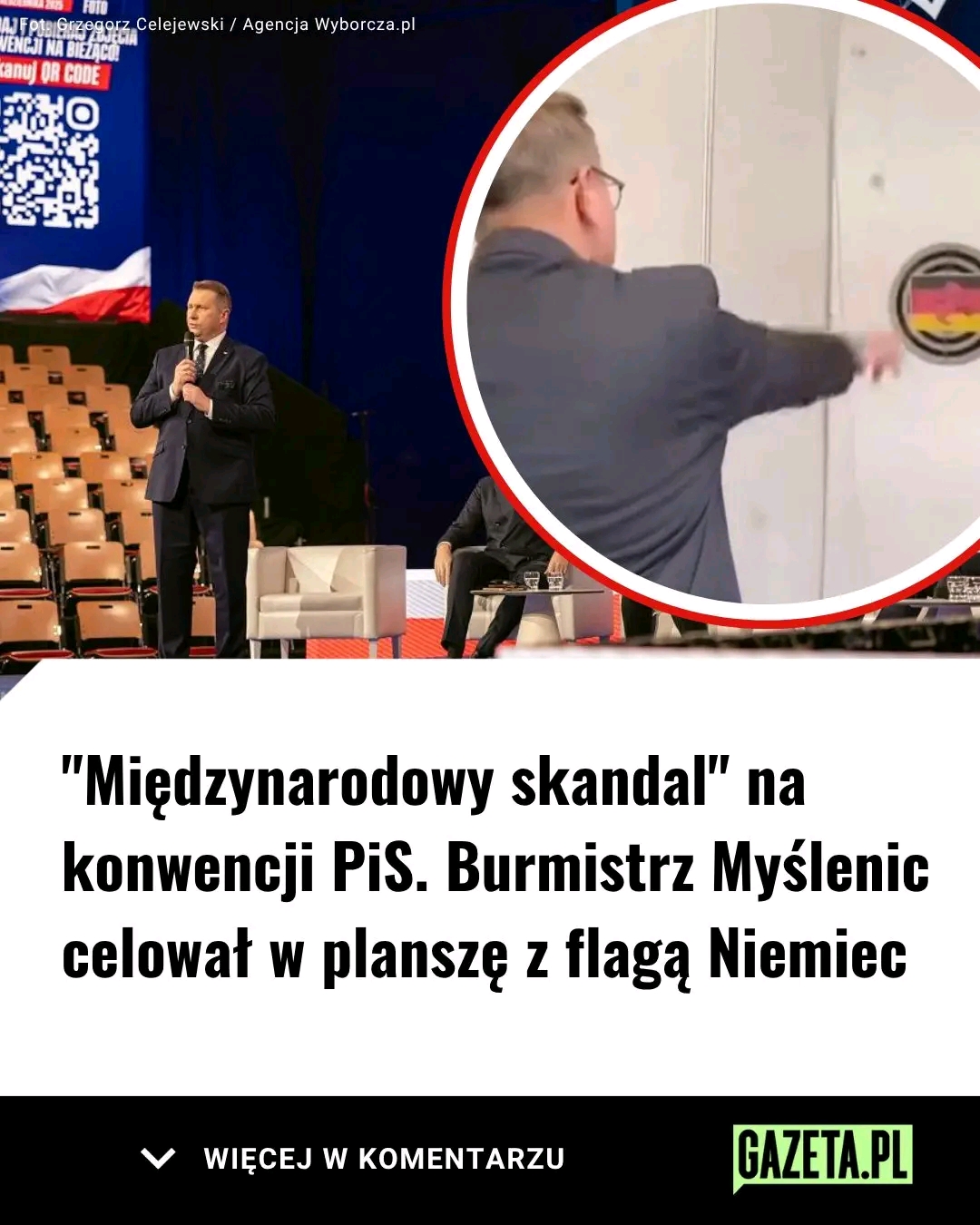Przypomnijmy, od 24 do 25 października w Katowicach odbyła się konwencja programowa PiS. Zorganizowano wówczas ponad 100 paneli z udziałem ponad 600 gości – wśród nich byli nie tylko politycy PiS, ale także eksperci z różnych dziedzin. W wydarzeniu brał udział m.in. burmistrz Myślenic. W sobotę opublikował w mediach społecznościowych film, na którym widać, jak gra w lotki, a jego celem była plansza z flagą Niemiec.