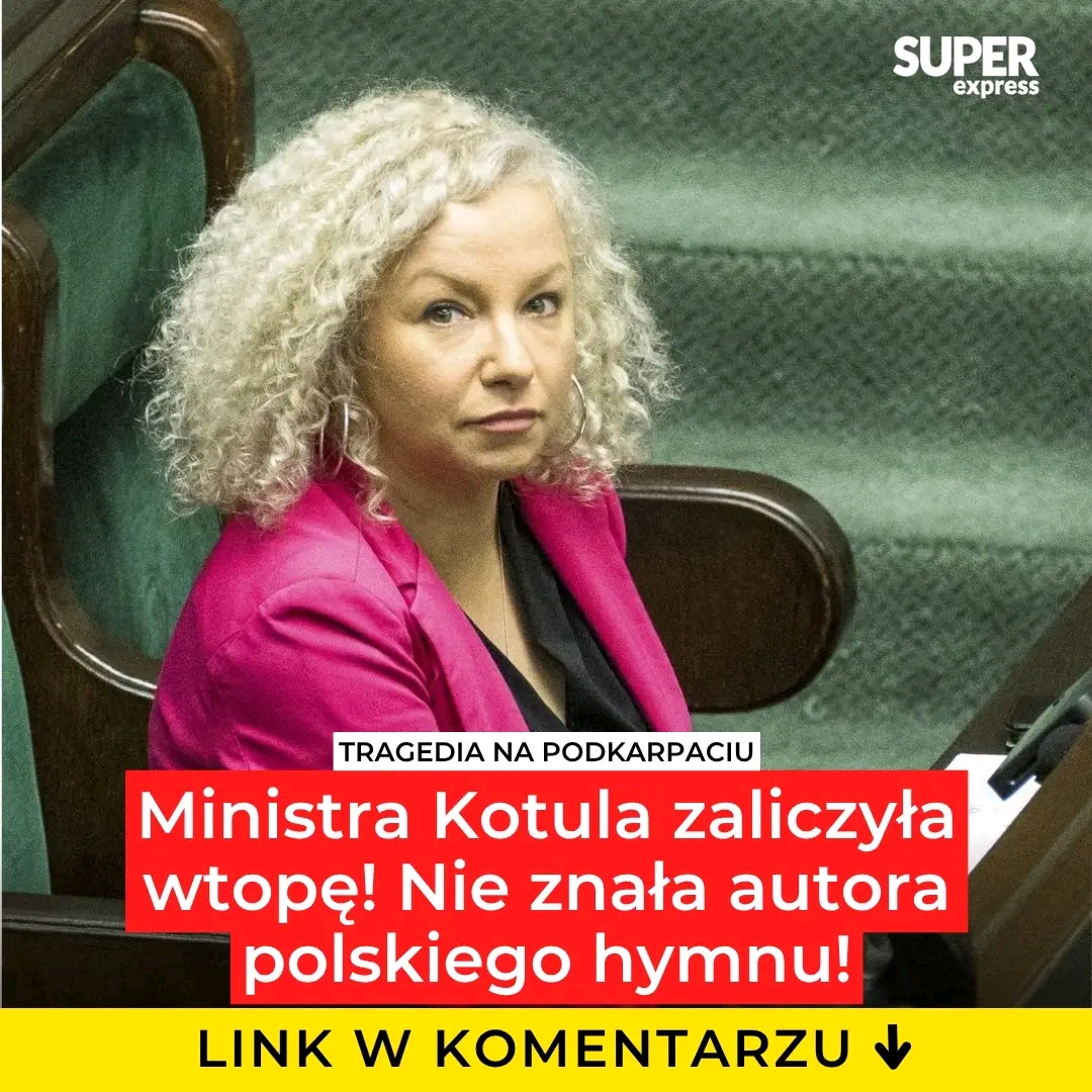 Oj niemałą wtopę zaliczyła ministra Katarzyna Kotula. Polityczka została zaczepiona w Sejmie przez młodego człowieka i zapytana o to, kto jest autorem tekstu polskiego hymnu. Chociaż wydaje się, że takie pytanie nie jest skomplikowane, to jednak narobiło ministrze niemałego zamieszania.