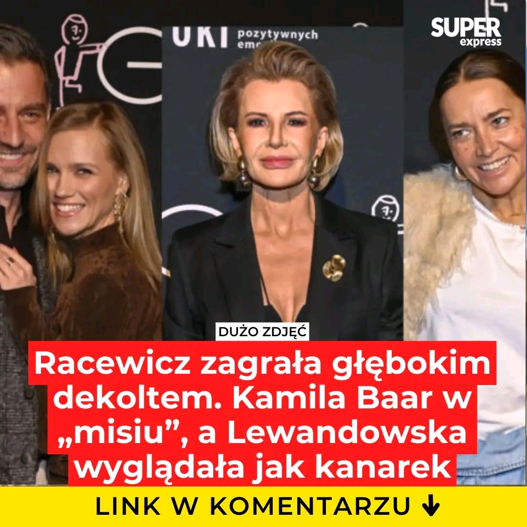 Joanna Racewicz postawiła tego wieczoru na elegancję z odrobiną pikanterii. Jej czarna, perfekcyjnie skrojona stylizacja odsłaniała dekolt, który natychmiast przykuł uwagę fotoreporterów. Złote akcenty i wyrazista biżuteria dodały całości luksusowego charakteru. Prezenterka udowodniła, że klasyka potrafi być ostrzejsza niż niejedna cekinowa suknia.