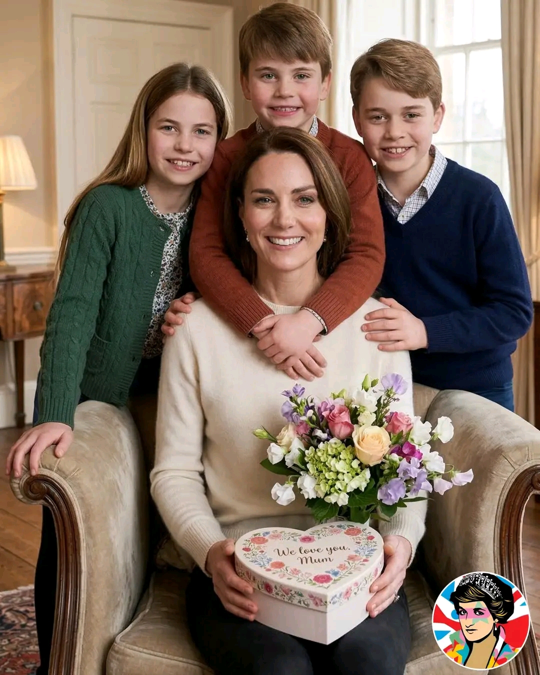 🌸 Mothering Sunday in the United Kingdom brings a beautiful moment within the British Royal Family, as Princess Catherine, the Princess of Wales, is seen surrounded by the three children who are growing under her love and guidance.