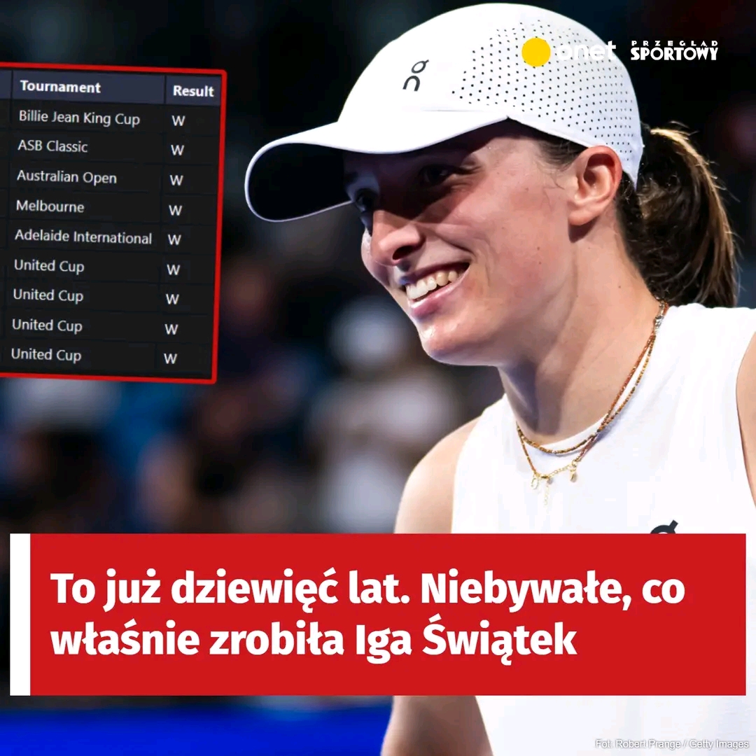 Porażka w pierwszym secie z Evą Lys była poważnym ostrzeżeniem dla Igi Świątek. Nie chodziło tylko o awans Polski w United Cup, ale także o niebywałą serię tenisistki, którą rozpoczęła na samym początku profesjonalnej kariery. Na szczęście 24-latka wygrała z Niemką, dzięki czemu na świecie zauważyli jej niezwykłe osiągnięcie. Wystarczy spojrzeć na tę listę triumfów sięgającą do 2018 r.