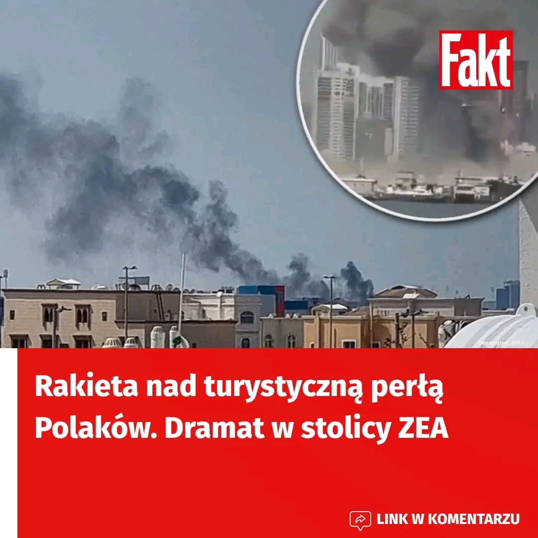 .W Abu Zabi, stolicy Zjednoczonych Emiratów Arabskich — jednego z najpopularniejszych kierunków wakacyjnych wśród Polaków — zginęła jedna osoba po tym, jak na miasto spadły szczątki przechwyconej irańskiej rakiety. Emiraty, a szczególnie Dubaj i Abu Zabi, co roku odwiedzają dziesiątki tysięcy turystów z Polski. Informację o ofierze podała państwowa agencja prasowa ZEA.
