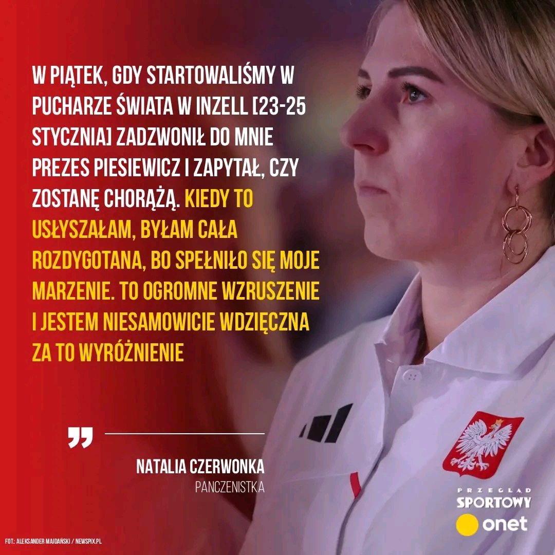 – W piątek, gdy startowaliśmy w Pucharze Świata w Inzell [23-25 stycznia] zadzwonił do mnie prezes Piesiewicz i zapytał, czy zostanę chorążą. Kiedy to usłyszałam, byłam cała rozdygotana, bo spełniło się moje marzenie. To ogromne wzruszenie i jestem niesamowicie wdzięczna za to wyróżnienie – mówi Czerwonka.
