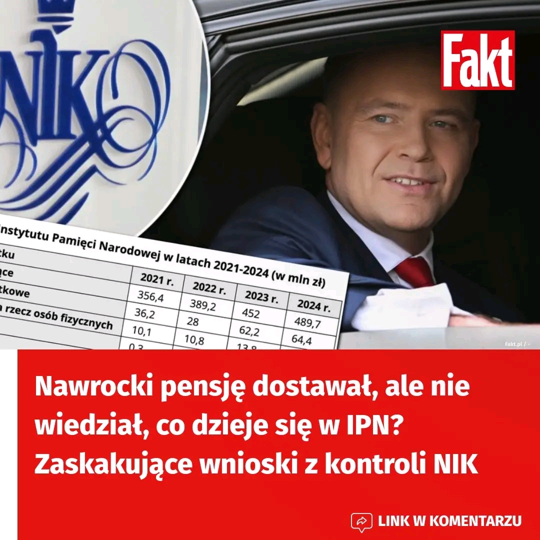 Najwyższa Izba Kontroli ujawniła wyniki audytu, jaki przeprowadziła w Instytucie Pamięci Narodowej jeszcze za czasów Karola Nawrockiego. Lista zarzutów jest bardzo długa, chodzi m.in. o niecelowe wydawanie pieniędzy. NIK nie wyklucza skierowanie sprawy do prokuratury. Kontrolerzy pytani o to, czy mógł nie mieć świadomości o tym, co w IPN dzieje się źle, odpowiedzieli, że jako kierujący tą instytucją, powinien taką wiedzę mieć. Jak ustalił “Fakt” do czasu objęcia urzędu prezydenta pobierał pensję prezesa instytutu.