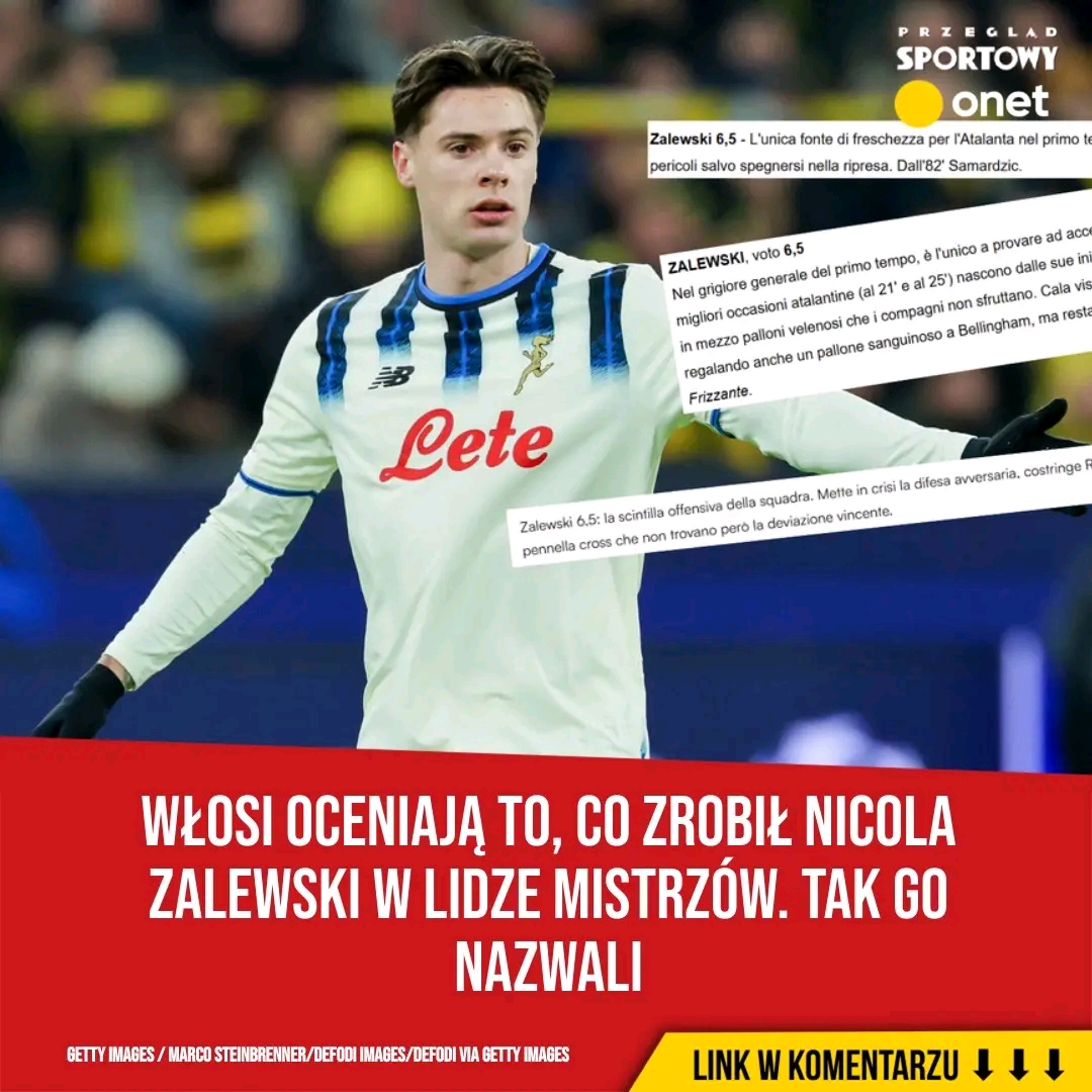 Nicola Zalewski zaliczył kolejny bardzo udany występ w barwach Atalanty Bergamo, a włoscy dziennikarze szybko docenili to co zrobił w starciu z Borussią Dortmund (0:2). Nadano mu nawet konkretny przydomek, choć eksperci zwracają przy tym uwagę na jedną bolączkę. Oto jak oceniono reprezentanta Polski.