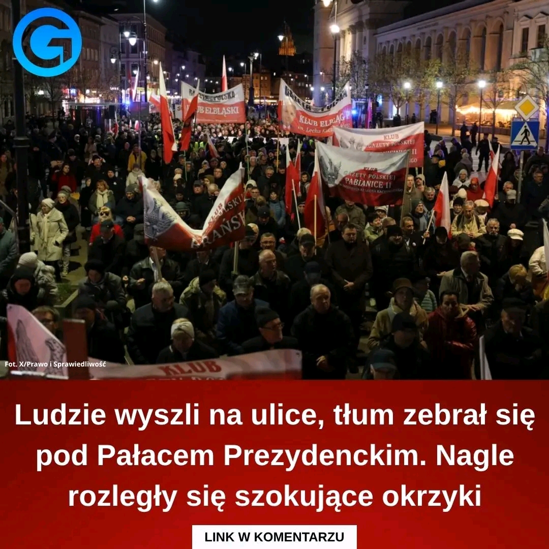 Słowa te zadziałały jak impuls — część zgromadzonych zaczęła natychmiast reagować, podchwytując hasło i powtarzając je coraz donośniej. Okrzyki szybko się zsynchronizowały, tworząc rytmiczny, wielokrotnie powtarzany slogan: „To był zamach”. Skandowanie niosło się po całym zgromadzeniu, było wyraźne, zdecydowane i trudne do zignorowania, nadając całej scenie bardzo emocjonalny, napięty charakter.