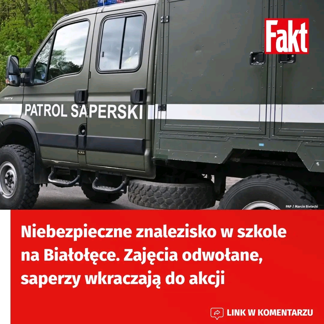 Niecodzienne znalezisko w Szkole Podstawowej nr 112 na warszawskiej Białołęce. Dyrekcja placówki podjęła decyzję o natychmiastowym wstrzymaniu zajęć, na miejsce wezwano saperów. Podczas prac budowlanych robotnicy natrafili na przedmiot przypominający niewybuch, prawdopodobnie z czasów II wojny światowej.