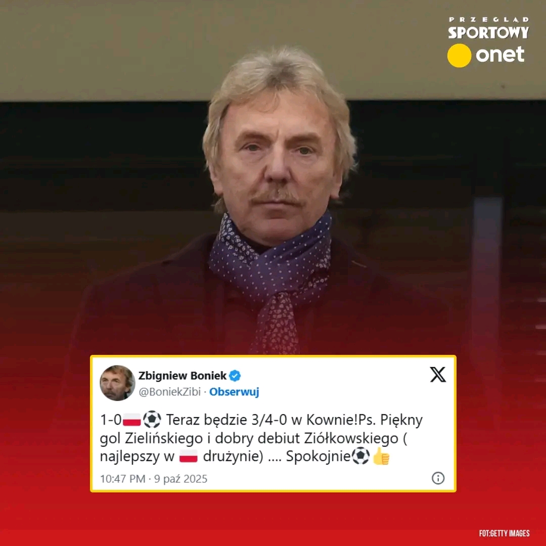 1-0 Teraz będzie 3/4-0 w Kownie! Ps. Piękny gol Zielińskiego i dobry debiut Ziółkowskiego (najlepszy w polskiej drużynie)… Spokojnie” — napisał były prezes Polskiego Związku Piłki Nożnej Zbigniew Boniek w mediach społecznościowych.