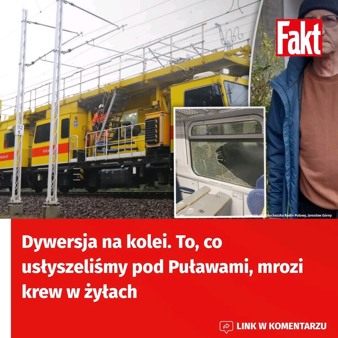 W niedzielę, 16 listopada na trasie Warszawa–Lublin doszło do trzech niebezpiecznych incydentów, które zdaniem służb mogą mieć charakter dywersyjny. Jeden z nich to eksplozja pod Garwolinem na Mazowszu. Dwa kolejne miały miejsce pod Puławami na Lubelszczyźnie. “Fakt” był na miejscu i usłyszał od mieszkańców rzeczy, które budzą poważny niepokój. Jak twierdzą miejscowi, tory w tym rejonie kilka lat temu były przebudowywane, a przy pracach mieli brać udział robotnicy mówiący po rosyjsku. — Tu trzeba było się znać, żeby to zrobić. Amator by zginął — przekonuje Waldemar, emerytowany leśniczy mieszkający tuż obok kolejowego szlaku.