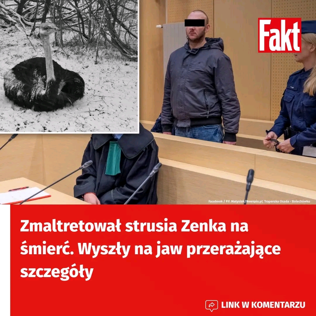 Historią strusia Zenka, ulubienica z Osady Traperskiej w podpoznańskim Bolechówku, przed rokiem żyła cała Polska. Łukasz Sz. w styczniu 2025 r. pod osłoną nocy przeciął ogrodzenie i wszedł do zagrody z ptakiem. W ręku miał kij, którym zmaltretował zwierzę. Bił je, kopał, ciągnął za skrzydło i szyję. Wszystko nagrywał telefonem. Przerażony struś Zenek zdołał uciec oprawcy. Do swojego domu wrócił następnego dnia, w fatalnym stanie. Nie przeżył.