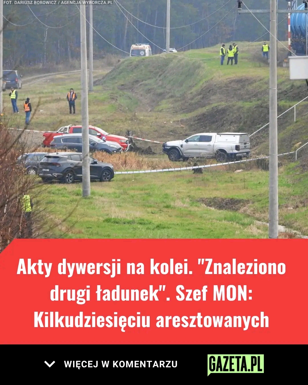 Dziennikarz Radia ZET Mariusz Gierszewski ustalił, że niedaleko miejsca uszkodzenia torów na trasie Warszawa-Lublin w powiecie garwolińskim “znaleziono kamerę i drugi ładunek wybuchowy”, który nie eksplodował. “Kamera może świadczyć o tym, że sprawcy chcieli udokumentować ewentualną katastrofę kolejową, a drugi ładunek wybuchowy, że chcieli być pewni, że do niej dojdzie” – czytamy. Szef MSWiA Marcin Kierwiński potwierdził na konferencji prasowej, że – jak opisuje Radio ZET – “kilkaset metrów dalej od wyrwy w kolejowej szynie znaleziono metalową obejmę, która zainstalowana była na torach kolejowych”. Rozgłośnia donosi również, że od 11 listopada odnotowano kilkanaście niepokojących zdarzeń w rejonie torowisk, zwłaszcza na wschodzie kraju. Zgłoszenia dotyczyły m.in. osób przebywających w pobliżu linii kolejowych oraz prób nawiązywania kontaktu z dyżurnymi ruchu przez nieznane osoby.