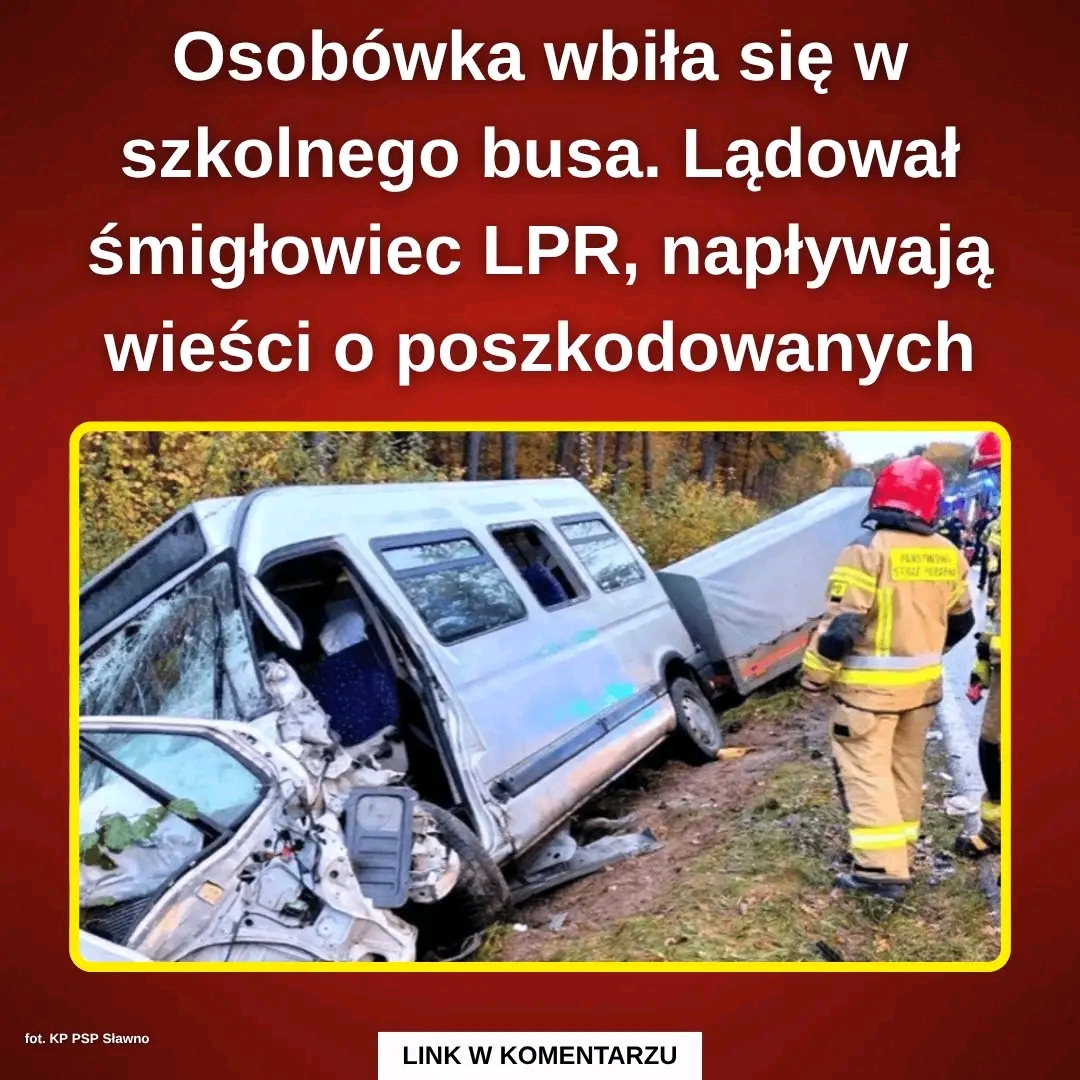 Osobówka wbiła się w szkolnego busa. Lądował śmigłowiec LPR, napływają wieści o poszkodowanych