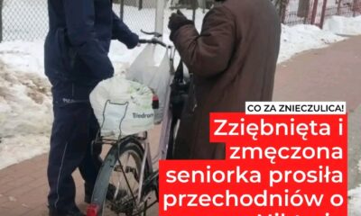 Samotna seniorka prosiła przechodniów o pomoc. Była zziębnięta i zmęczona. Po śliskim chodniku prowadziła rower obładowany zakupowymi torbami. To były jej żywieniowe zapasy na dwa tygodnie....