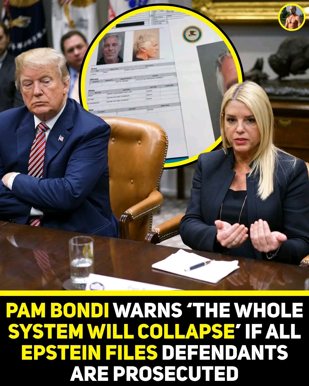 A claim circulated widely on social media that Bondi said “if we prosecute everyone in the Epstein files the whole system will collapse.” However, multiple independent fact‑checks have found no credible evidence she actually made this statement; reputable searches of official transcripts, news reports, and DOJ communications have turned up no direct source for the attributed quote, which appears to be a fabrication that spread online. What is clear from public reporting is that the Justice Department has not pursued broad prosecution of individuals named in the files beyond Ghislaine Maxwell’s earlier conviction, and Bondi has not outlined a policy of systemic prosecutions that could undermine institutions.
