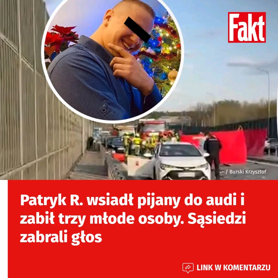 Patryk R. nie miał prawa wsiąść za kierownicę. Po pierwsze miał zakaz, a po drugie był pod wpływem alkoholu. A jednak to zrobił. Na S7 spowodował wypadek, w którym zginęła trójka młodych ludzi. Chcąc dowiedzieć się szczegółów na temat mężczyzny, który jednym, nieodpowiedzialnym czynem przekreślił trzy ludzkie istnienia, pojechaliśmy porozmawiać z jego sąsiadami i rodziną.