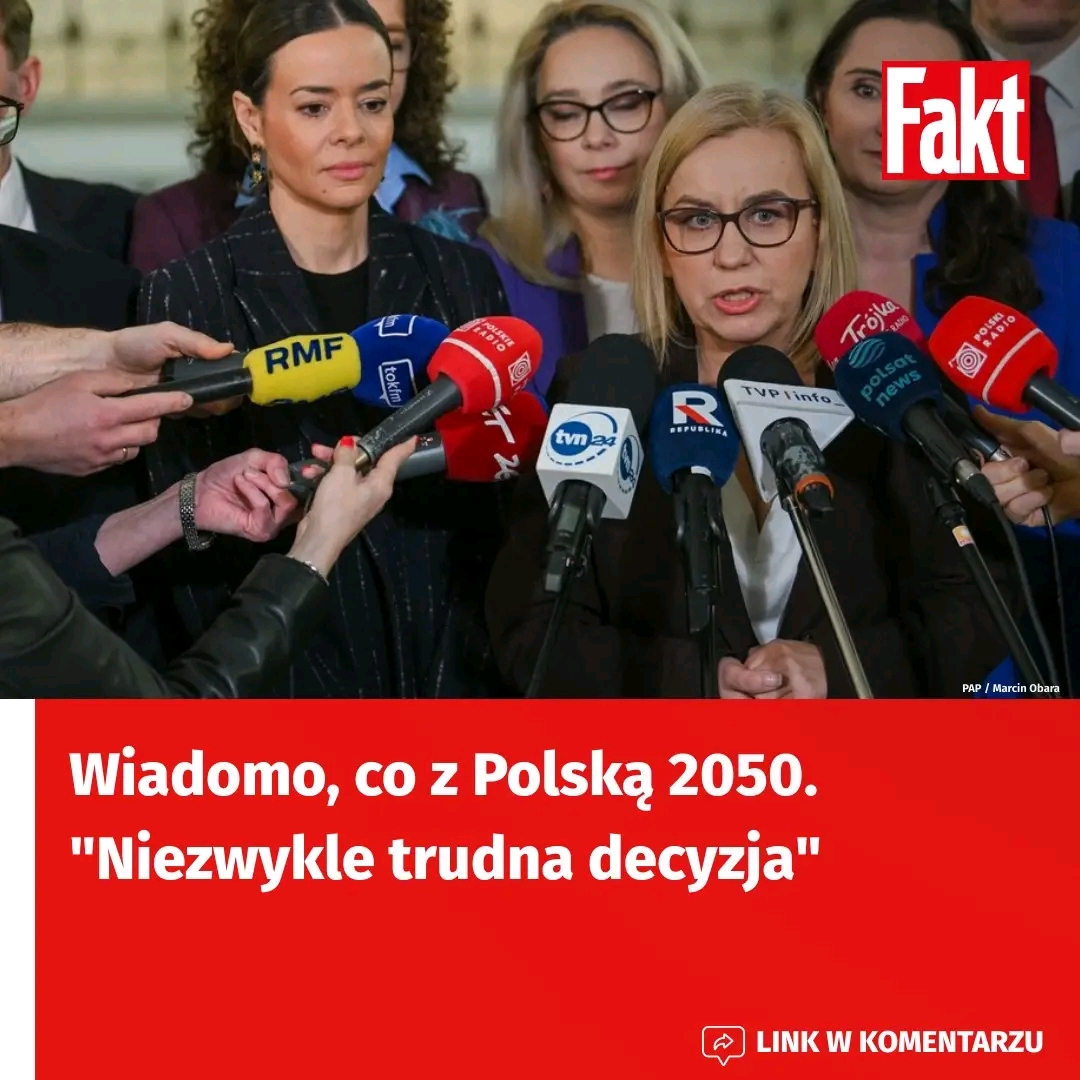 Podjęliśmy właśnie decyzję, że chcemy utworzyć klub parlamentarny, w którym odzyskamy przestrzeń do pracy i realizacji naszych postulatów, które składaliśmy w trakcie kampanii w 2023 r. — ogłosiła Paulina Hennig-Kloska w imieniu części parlamentarzystów Polski 2050. Zapewniła, że to dla nich “niezwykle trudna decyzja”. Ogłosiła też nazwę klubu.