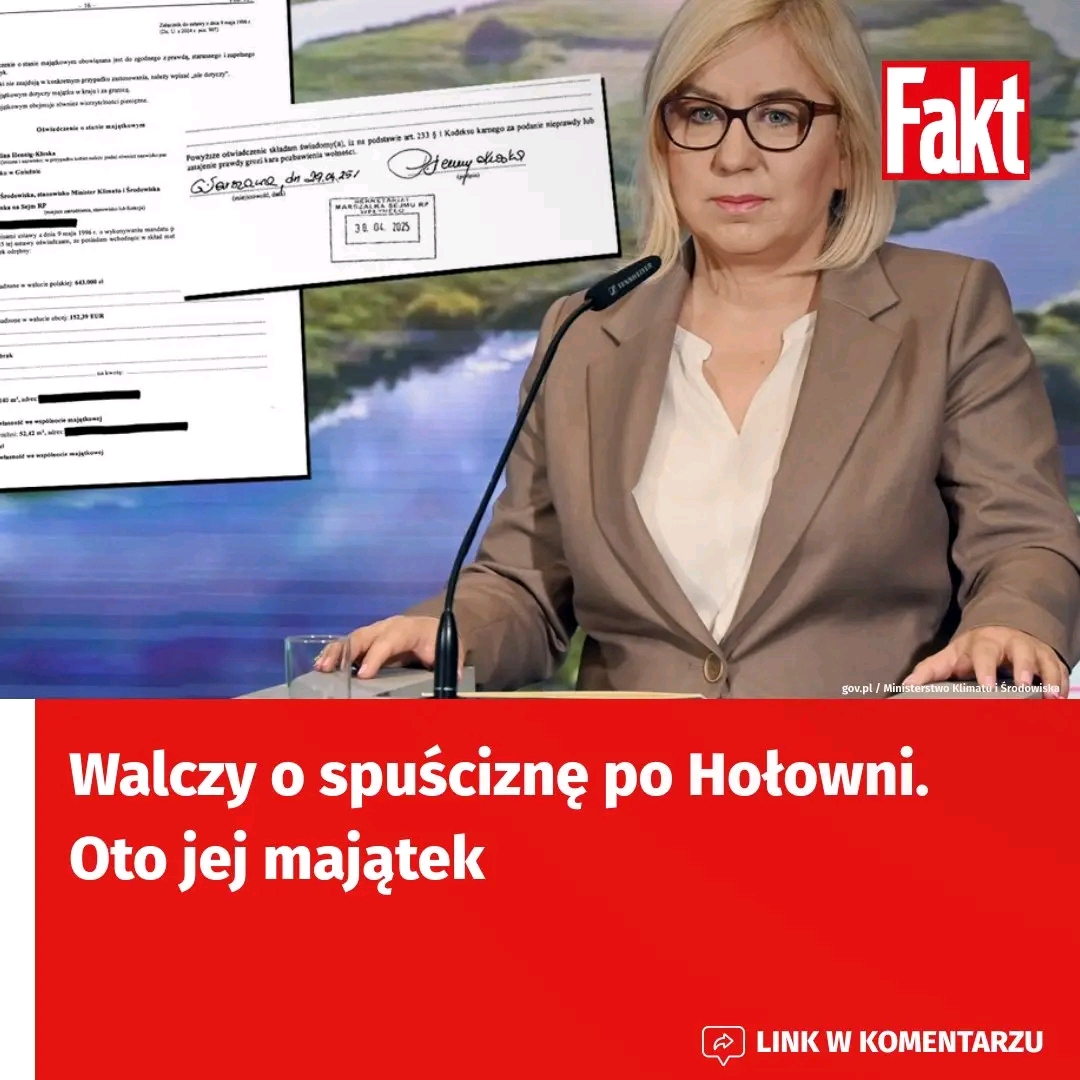 Co ciekawe, w części oświadczenia z 2023 r. dotyczącej zobowiązań pieniężnych, takich jak kredyty i pożyczki, Hennig-Kloska wskazała “poręczenie wekslowe do wartości 54 tys. zł na rzecz zabezpieczenia kredytu dla partii Polska 2050 Szymona Hołowni”. Do ostatniego oświadczenia tego zobowiązania ministra już nie wpisała.