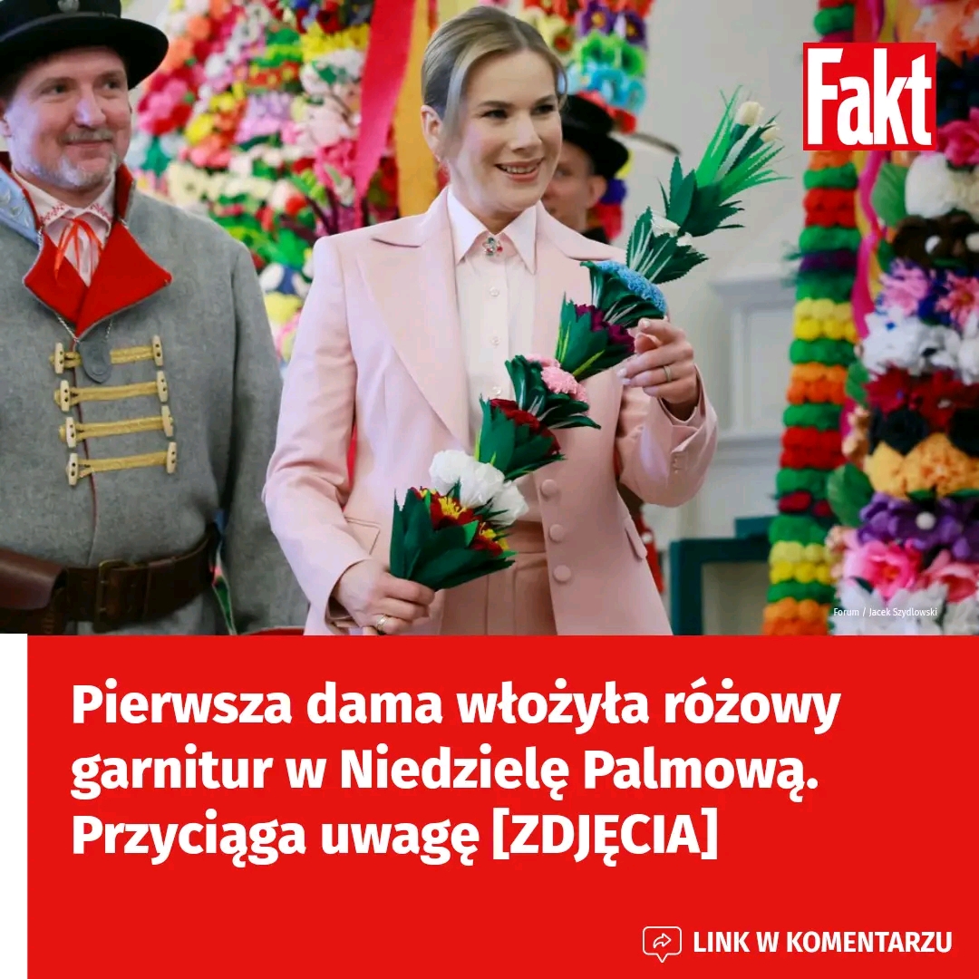 Jej obecność nie przeszła niezauważona – nie tylko ze względu na rangę wydarzenia i jej pozycję, ale także dzięki stylizacji, która idealnie wpisała się w charakter świątecznego dnia. Pierwsza dama postawiła na niezwykle elegancki, a zarazem wiosenny zestaw w odcieniu pudrowego różu. Garnitur, który wybrała, był modnie skrojony – taliowana marynarka subtelnie podkreślała sylwetkę, a jednocześnie zachowywała formalny, reprezentacyjny charakter.
