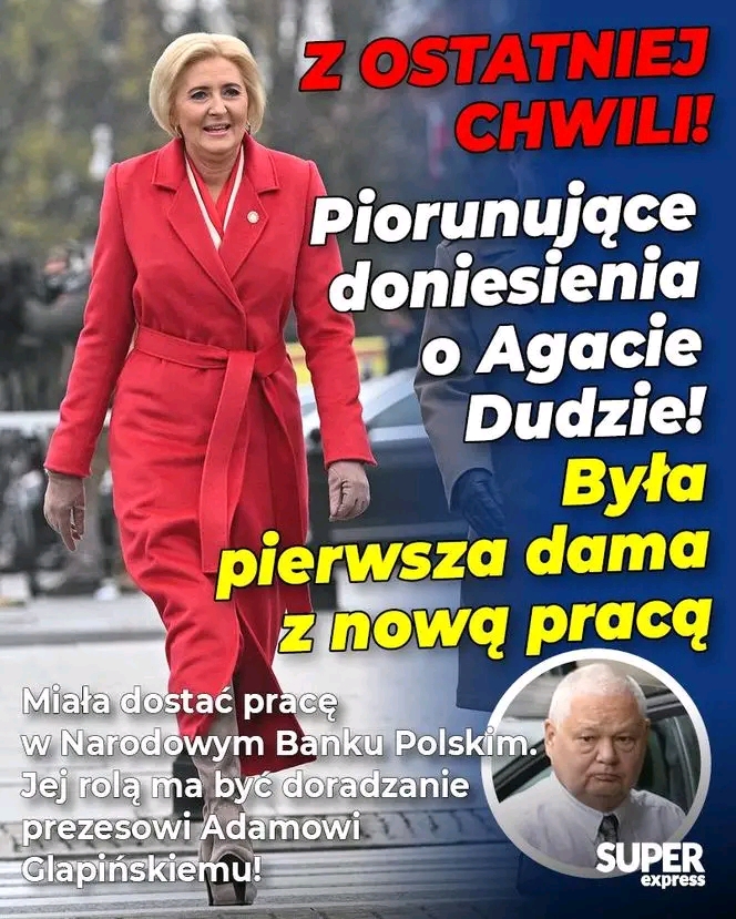 Nowe zadania nie stoją, jak się okazuje, tylko przed byłym prezydentem Andrzejem Dudą, ale i przed jego żona, przynajmniej tak wynika z medialnych ustaleń. Jak nieoficjalnie dowiedział się TVN 24, była pierwsza dama, Agata Duda, miała zostać doradcą prezesa NBP: – Ma tam pełnić rolę doradczyni prezesa NBP Adama Glapińskiego – czytamy na tvn24.pl.