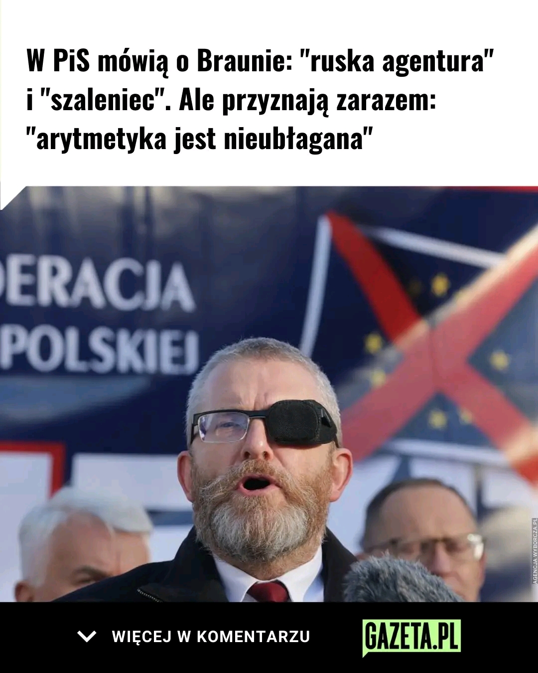 Do tego ugrupowaniu Jarosława Kaczyńskiego wyrosła podwójna konkurencja po prawej stronie w postaci Konfederacji i Konfederacji Korony Polskiej, na czele której stoi Grzegorz Braun. To polityk, który od 2022 r. kwestionuje m.in. potrzebę wspierania napadniętej przez Rosję Ukrainy, a w ciągu ostatnich dwóch lat znacząco nasilił retorykę antyżydowską (zgasił w Sejmie chanukowe świece, negował Holokaust, a ostatnio zorganizował prowokacyjny występ przed bramą obozu w Auschwitz). Politycznie zyskał na znaczeniu po wyborach prezydenckich, w których zdobył 6,34 proc. (więcej niż Szymon Hołownia czy kandydaci lewicowi), a jego partia ostatnio w sondażach notuje zwykle od 5 proc. do nawet ponad 7 proc. poparcia, odbierając część głosów PiS.
