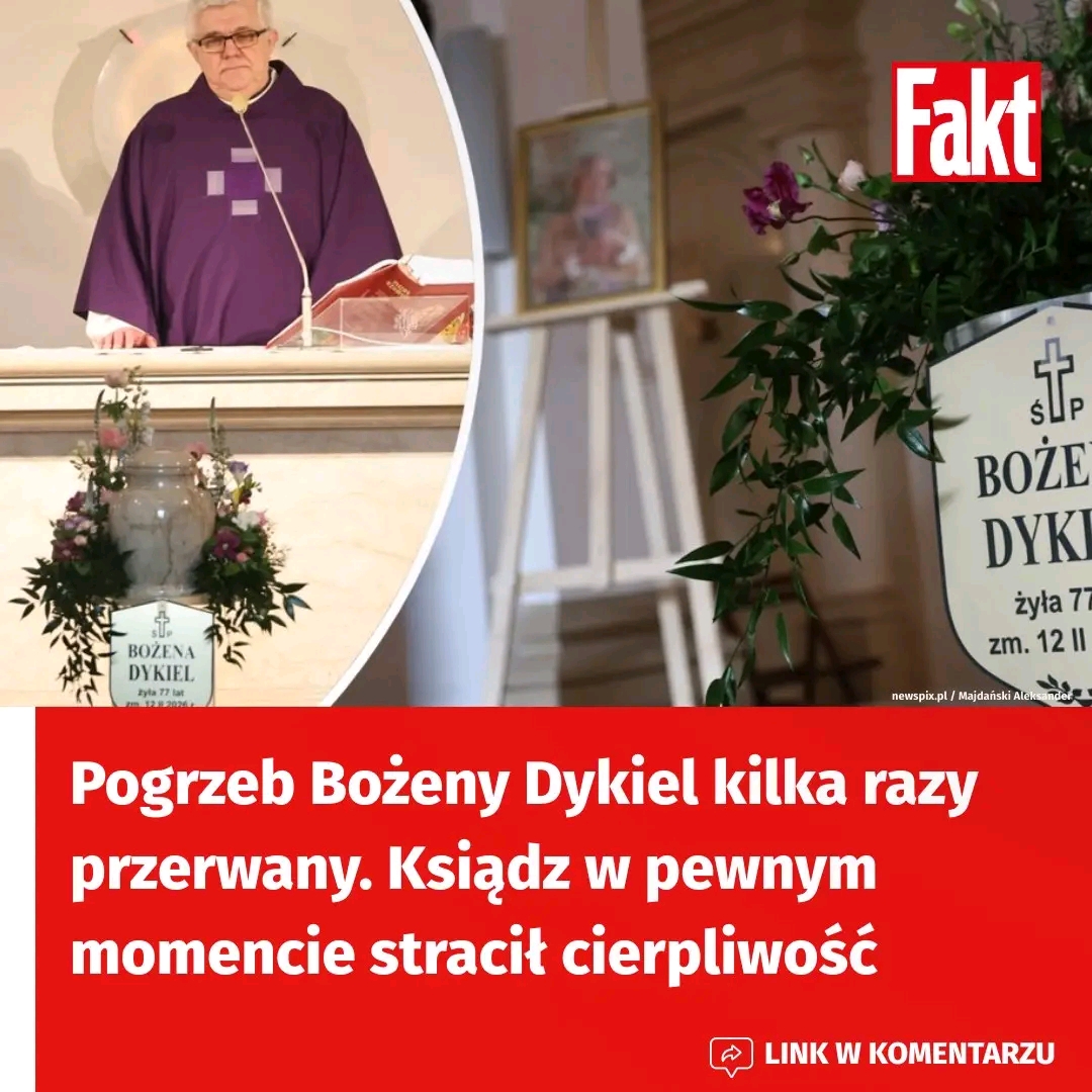 Pogrzeb Bożeny Dykiel, wybitnej aktorki, która zmarła 12 lutego 2026 r. w wieku 77 lat, miał być uroczystością pełną zadumy i szacunku. Niestety, podczas mszy żałobnej doszło do incydentu, który zakłócił przebieg ceremonii i oburzył zgromadzonych. W pewnym momencie prowadzący kazanie ks. Andrzej Luter stracił cierpliwość i stanowczo zaapelował do żałobników. — Proszę o wyłączenie telefonów — upominał kilkukrotnie duchowny.
