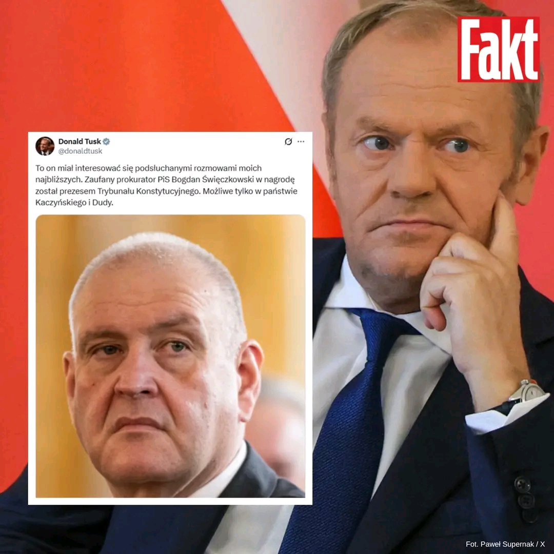 To on miał interesować się podsłuchanymi rozmowami moich najbliższych. Zaufany prokurator PiS Bogdan Święczkowski w nagrodę został prezesem Trybunału Konstytucyjnego. Możliwe tylko w państwie Kaczyńskiego i Dudy” — napisał premier na portalu X.