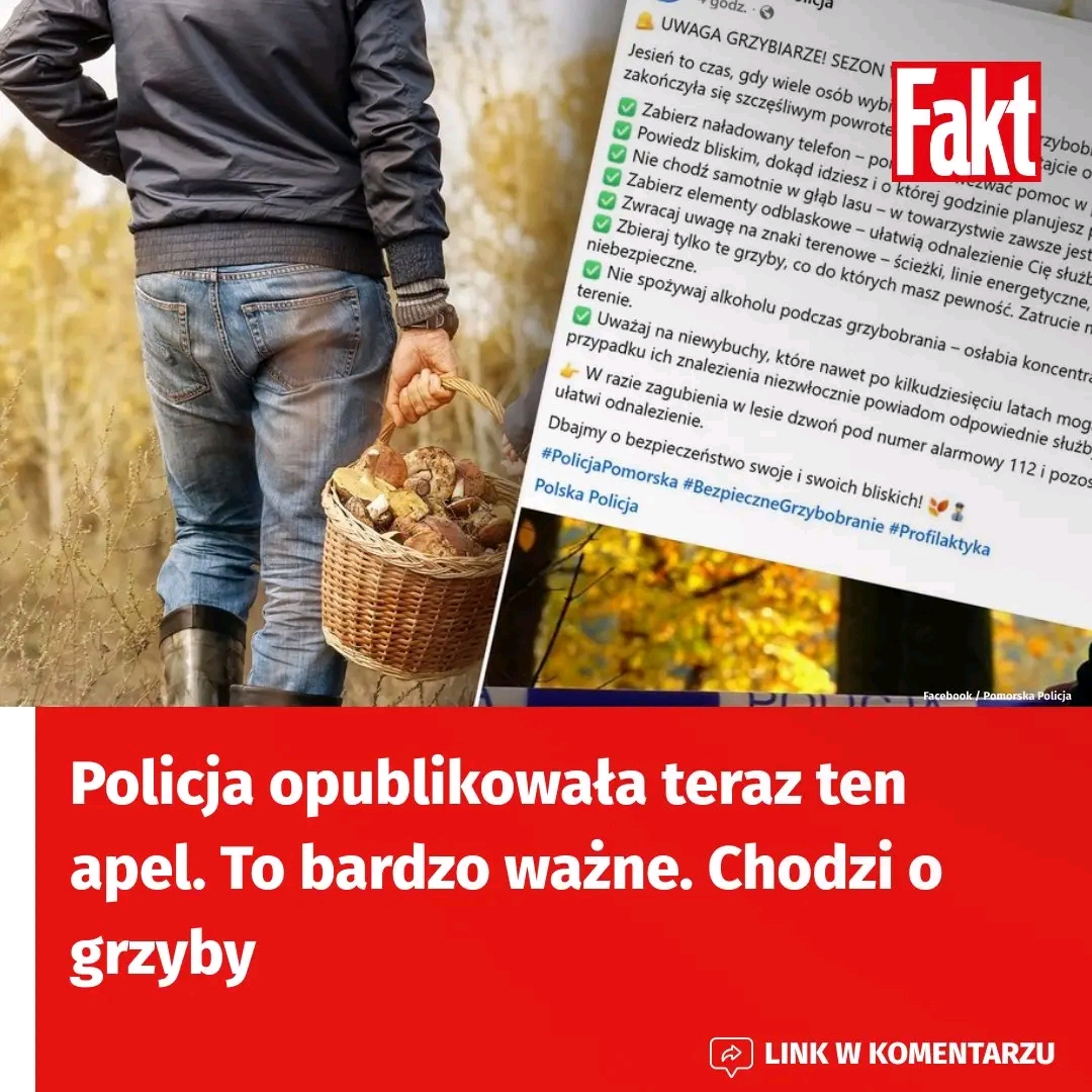 Policja opublikowała teraz ten apel. To bardzo ważne. Chodzi o grzyby