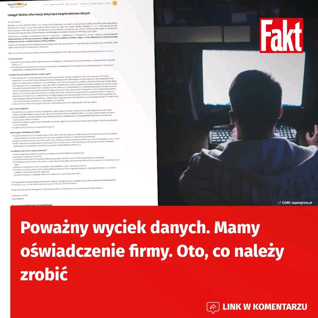 Spółka AIQLABS przesłała “Faktowi” oświadczenie w sprawie wycieku danych ok. 10 tys. użytkowników serwisu Supergrosz. Krzysztof Gawkowski przyznał wcześniej, że “sytuacja jest bardzo poważna”. Firma wskazała, jakie informacje pozyskali hakerzy i w jaki sposób mogą próbować je wykorzystywać. Zaapelowała również o wdrożenie konkretnych środków ostrożności.